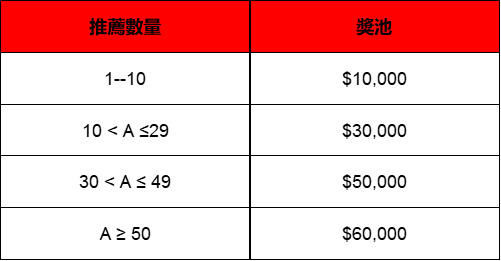 活動期間,註冊賬戶的新用戶將獲得5美元;推薦人將根據下表獲得獎金。
