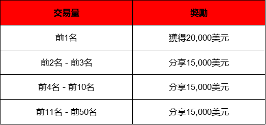 新用戶在活動時間內註冊並交易量不低於200美元,就可以贏得50,000美元獎池的份額。這個活動是先到先得的,所以不要錯過!