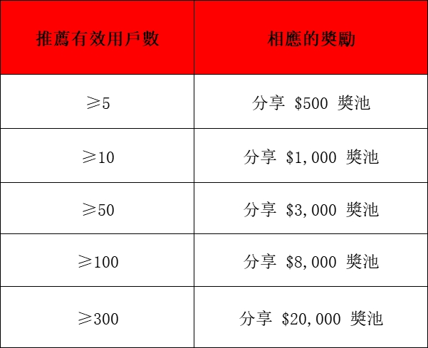 活動二:邀請新的有效用戶,最高分享$20,000獎池