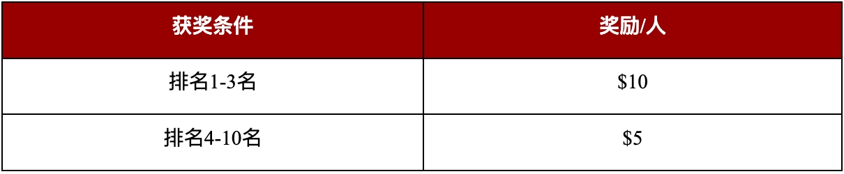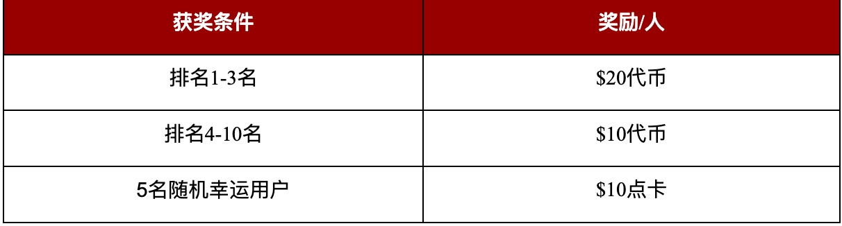 代币奖励,并且官方将从所有的内容中随机抽取5位幸运用户,每人可获得