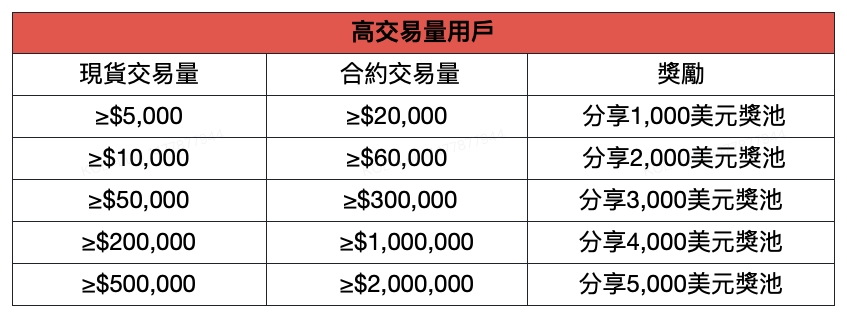 3.前100名現貨交易額超過2000美元的新有效用戶將獲得5美元
