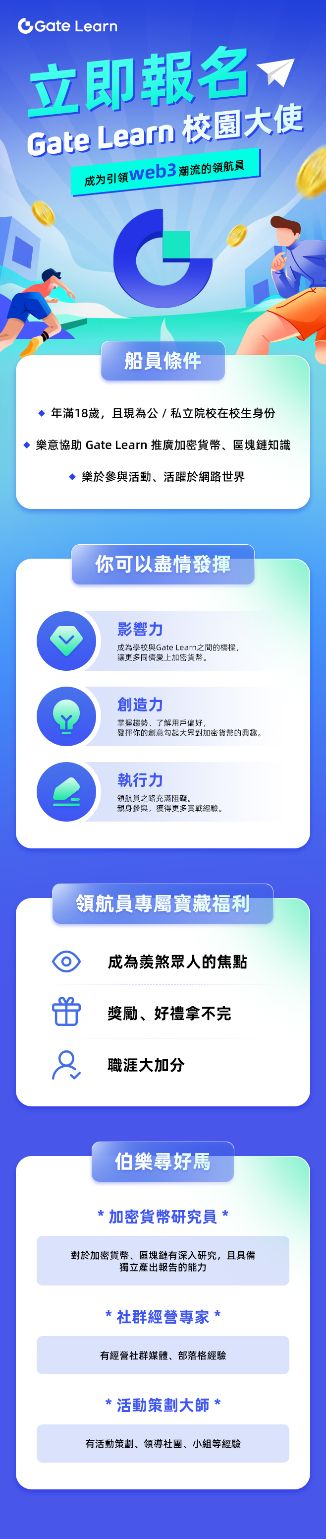 Gate Learn 校園大使集結令!!尋找你的Web3 新機遇