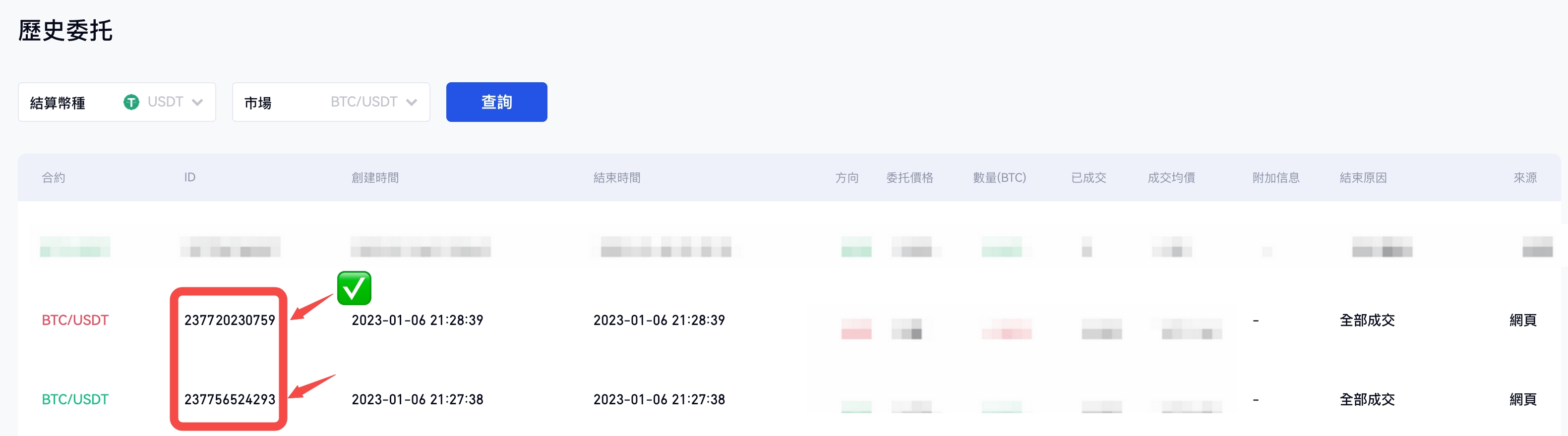 *註:合約訂單號(即「委託ID」)目前僅可在Web端查看,請您在登錄後點擊此處查看您的合約訂單號(僅限已完成交易的訂單有效):