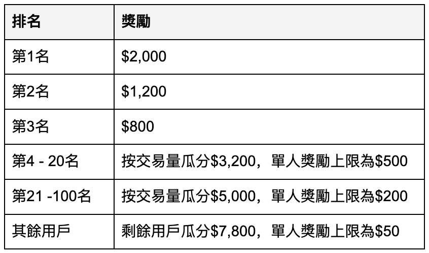 5. 子賬戶與主賬戶同時參與以及同一KYC認證信息的多個賬戶將被視為同一用戶單次參與,同時子賬戶交易量不會計入主賬戶。