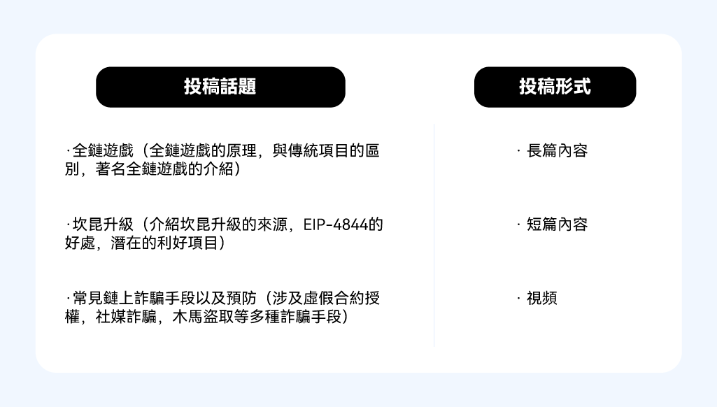 2.Gate Learn不限制每位创作者每期提交作品的数量,因此没有奖励上限,欢迎踊跃投稿。