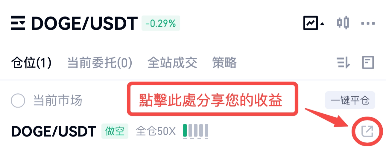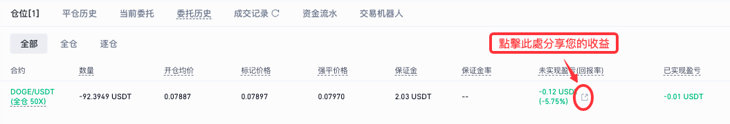 (1)登錄Gate APP或Web端,在“合约页面-仓位-当前仓位-分享”中查看收益海報。