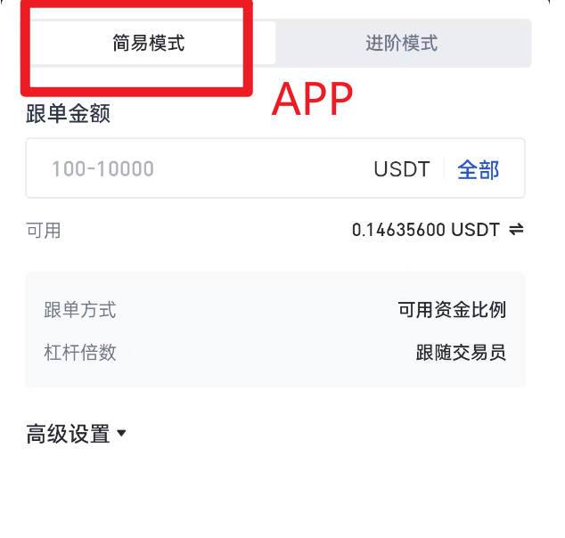3.跟单模式:完全跟随,即Web端点击跟单后,按照默认的参数进行跟单,其余设定不需改变。APP端选择【简易模式】进行跟单。