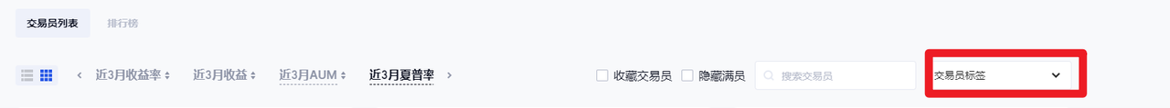您可以在“交易员列表”——“交易员标签”处,选择相应的标签,即可看到对应标签下的带单员。
