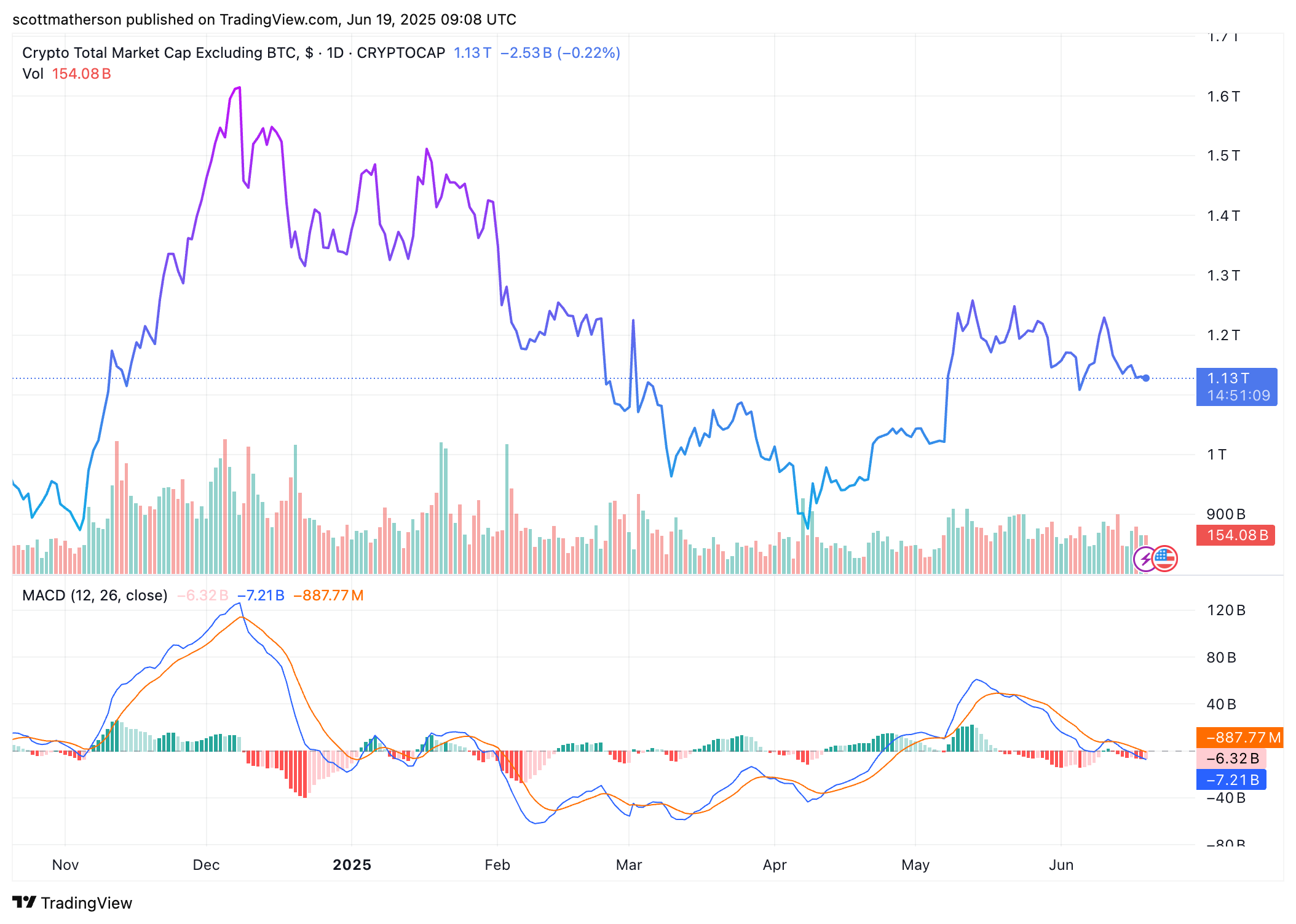 !Altcoin总体加密市值,不包括BTC为1.13万亿美元 |来源:Tradingview.com 上的 TOTAL2特色图片来自 Adobe Stock,图表来自 Tradingview.com