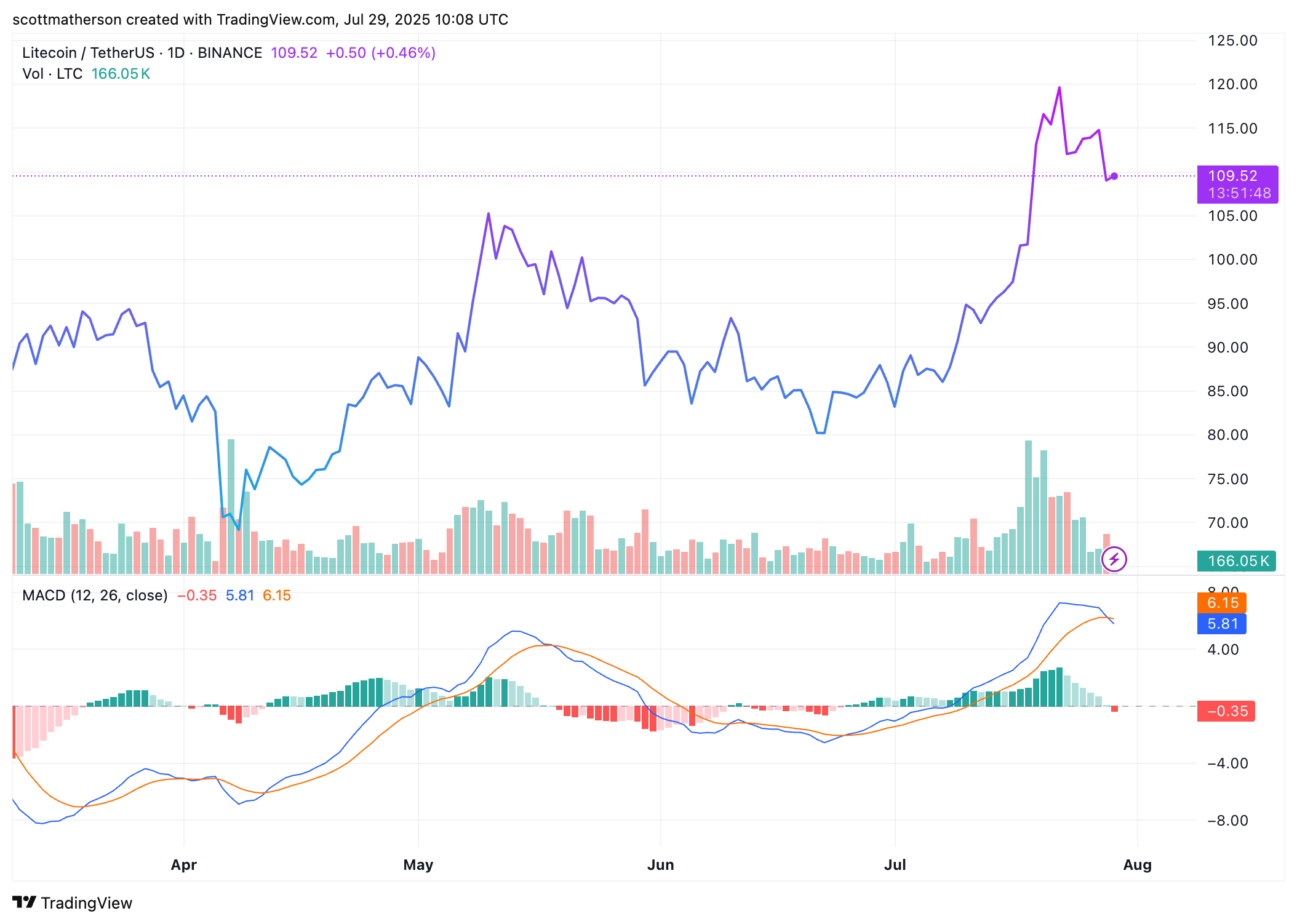 !LitecoinLTC 在1D图表上交易价格为109美元 |资料来源:Tradingview.com 上的 LTCUSDT特色图片来自 Adobe Stock,图表来自 Tradingview.com