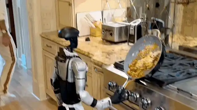 Optimus在超市购物。Neo检查冰箱,向Optimus请求额外的食材。Figure根据用户的过敏信息调整食谱。每个机器人实时连接,像一个团队一样有机运作。用户只需简单地命令:“我想吃蛋包饭。”