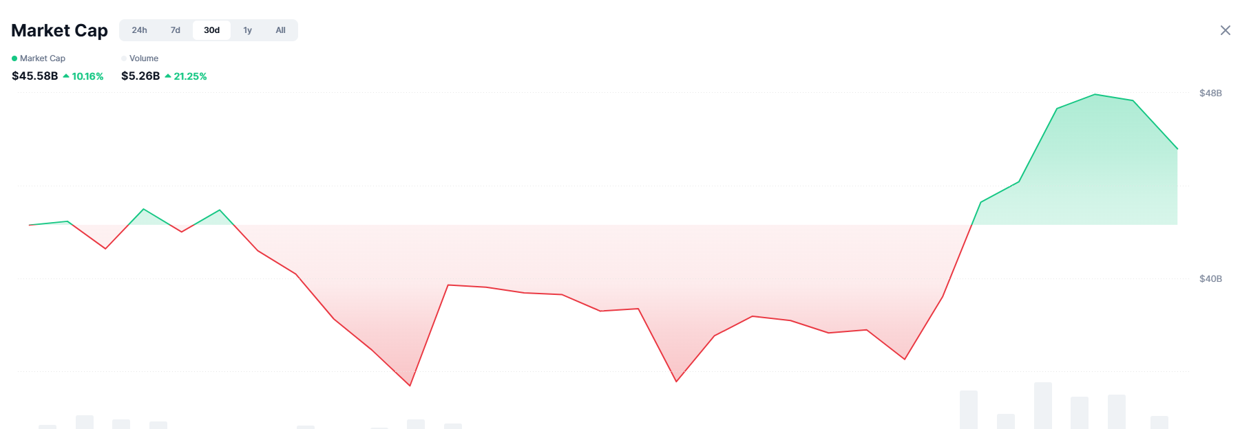 此后,memecoin的市值开始反弹,周一突破了477亿美元,高于12月29日的$38 十亿。截至周四,市值稳定在$45 十亿左右。